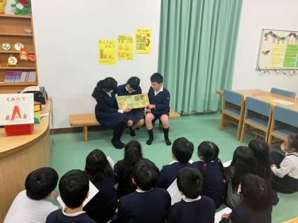 今週と来週の火曜、木曜の2時間目に図書委員会が読み聞かせをします!今日は一年生がたくさん来てくれました!