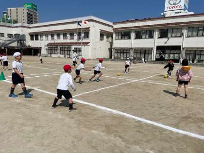 体育ではサッカーをしています。