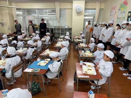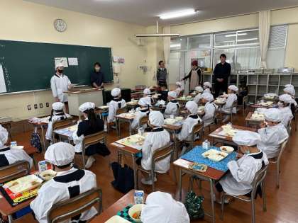 6年生が準備をしにきてくれて、美味しく給食を食べることができました!