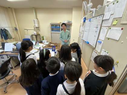 保健室の先生、栄養指導の先生、管理作業員さん、事務室の職員さんにお話を聞きました。