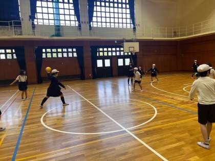2時間目の休み時間にみんな遊びをしました。今日は体育館が使えたので広いコートでドッジボールをしました。ボールを2つ使っていたので、みんながボールを投げることができました。受けたり、投げたり、よけたりとドッジボールはいろいろなことができるのでみんなで楽しめました!