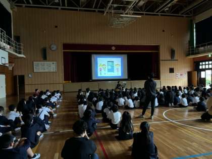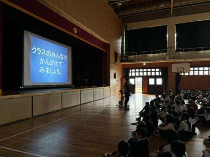 朝の児童朝会で、どんなことがいじめというのか、いじめによっていのちをおとしている人がいることなどのお話がありました。