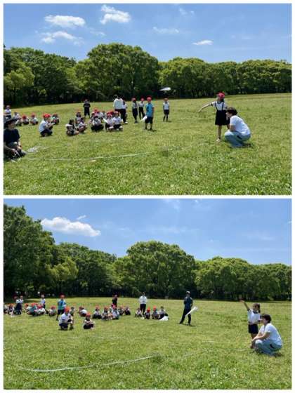 紙ひこうきは、ひこうきを折るところから自分たちで作りました。