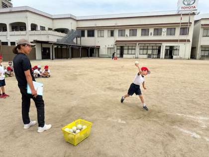 今日はソフトボール投げをしました!
