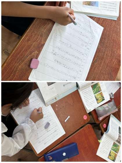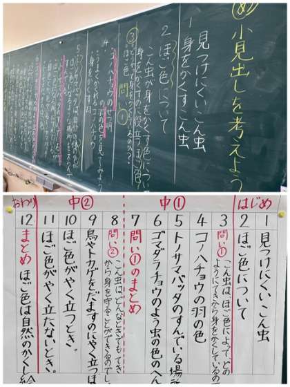 国語科の「自然のかくし絵」では、段落ごとに小見出しを考える学習をしました。