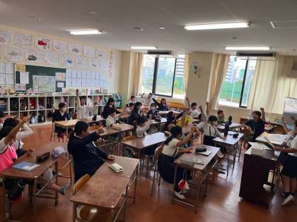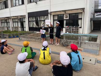 2年生と5年生で協力してお米づくりをします。今日は、田植えの前の「しろかき」という土を混ぜてやわらかる作業をしました。