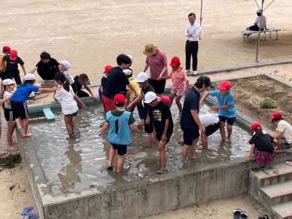 怖がる2年生の手を取って「一緒に入ろう。」と優しく声をかける5年生の姿もありました。