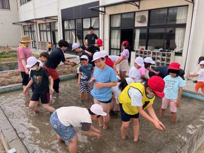 さぁ、いよいよ田んぼに入ってゴミをとったり、土を踏んで柔らかくしたりします。