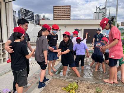 「きゃー。」「気持ちいい〜。」「足が動かなーい。」など大興奮で作業しました。