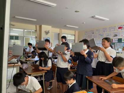 正解は、先生の作ったQRコードを読み取っているところでした!