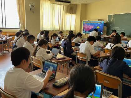 テスト勉強をパソコンを使ってやっています。みんなで協力して楽しく学習することができました。