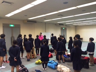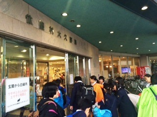 フェリーが到着した桟橋から、宿舎玄関まではバスで送ってもらいました。
