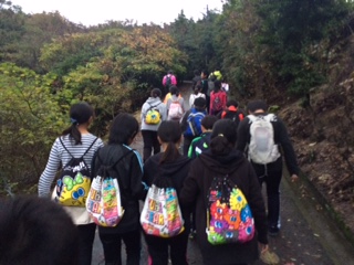 予定していた山登りへ…。地面は濡れていますが、アスファルトで舗装されているので安心です。