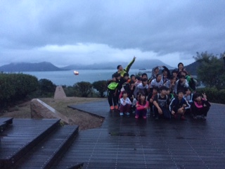 頂上の展望台からは、雨上がり、夕暮れ時の瀬戸内海の島々が広がっています。