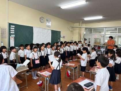 今日は音楽の時間に2年生にきてもらい、一緒に校歌を歌いました!