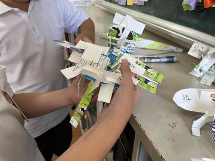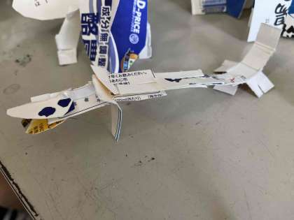 牛乳パックを繋ぎ合わせると、、、色々な物に見えてきます。