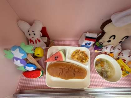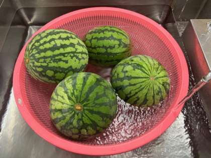 調理員さんがひとつのすいかを64等分に切ってくれています。すごい技術ですね。