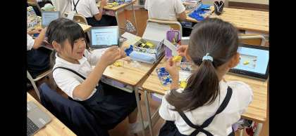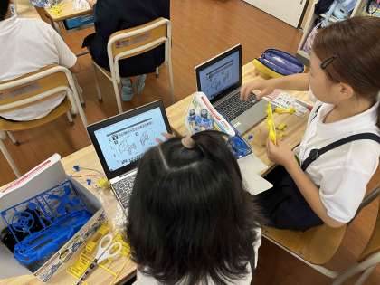『電気のはたらき』の学習でモーターカーを作っています。動画の説明を見ながら、みんな頑張って作る事ができました。