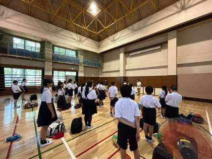 全てのイベントが終わり、退所式です。マナーを守って、友だちとたくさんの思い出を作れたように感じます。家に着くまでが一泊移住です!気をつけて栄小学校に帰りましょう!
