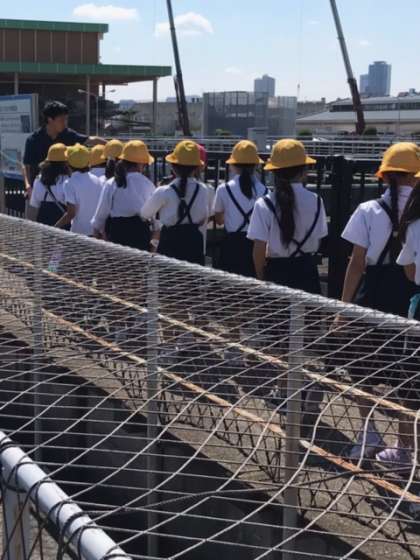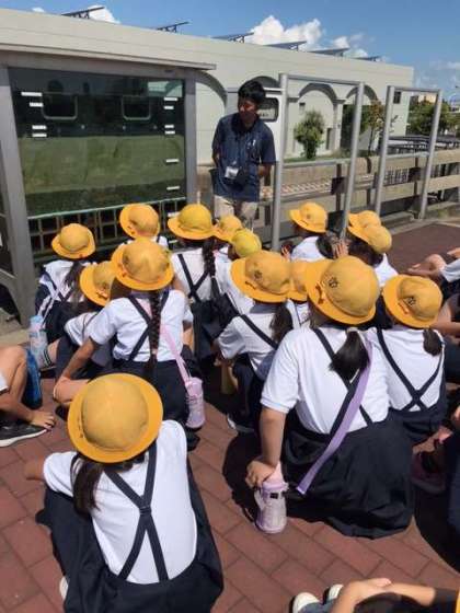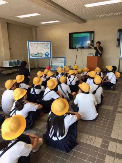 浄水場の動画を見た後、凝集沈澱池から見学スタート。続いて、急速砂ろ過池、高度浄水処理棟(後オゾン接触池・粒状活性炭吸着池)と見学させてもらいました。