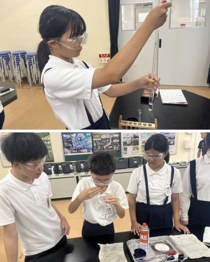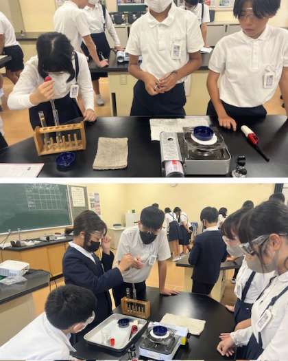 実験中の注意事項や取り扱い方に、気をつけながらしっかり行っていました。