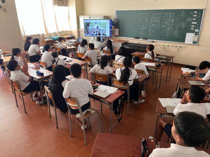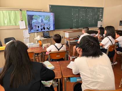 6年生が修学旅行で訪れている広島から平和集会の様子を中継してくれました。5年生は来年訪れることになります。そのことを踏まえてしっかりと中継を見ることができました。