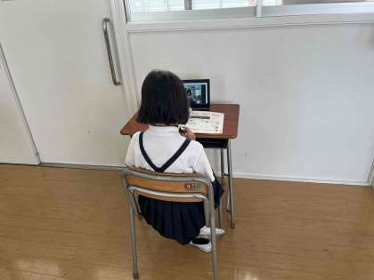 タブレットに向かって何回もチャレンジして撮り直していました。テスト中にもどんどん上手になります。