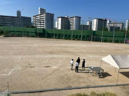 運動場のトラックつくり、1日目