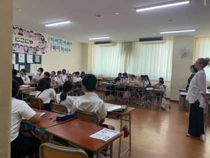 先生の自己紹介の後、全員が英語で自己紹介しました