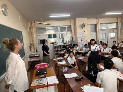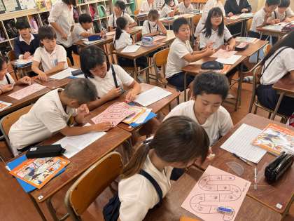 子どもたちも自己紹介をし、名前と好きなものをしっかりと言えていました。また、先生に質問をする機会もあり、学習したフレーズを使って英語で聞くことができていました!すばらしい!!