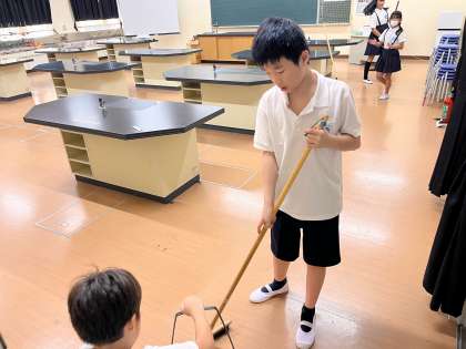 昼の掃除では、週に一度理科室もしています。ゴミがたくさんあって大変ですが、とっても一生懸命!