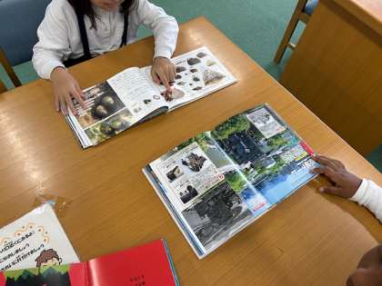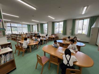 図書館見学に向けて、図書室でも静かに読む練習をしています。一人読みをたくさんして、集中力をつけましょうね^ ^