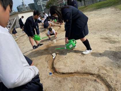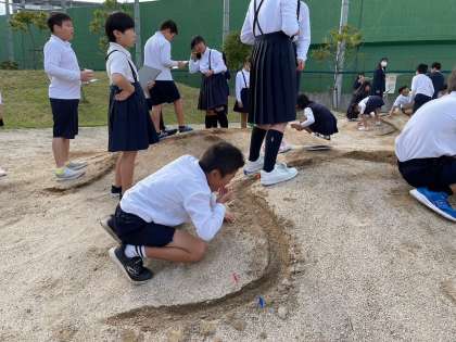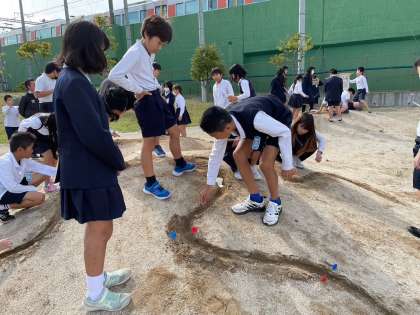 運動場の片隅に5年生が集まっています。
