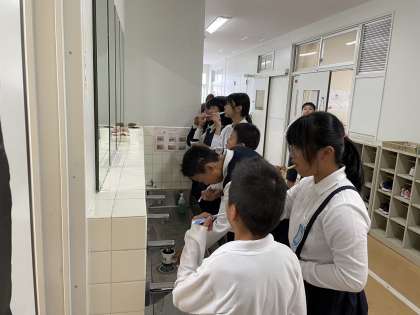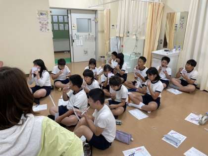 体重測定のときに、正しい歯の磨き方を教えていただきました。