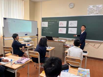 みんなこれまで学習したことを使っていろいろな図形の面積を求めています。その中で気づくこともいっぱいあって、ただ公式に当てはめるのではなく、なぜこの公式になったのかを考えているところが素晴らしいです!