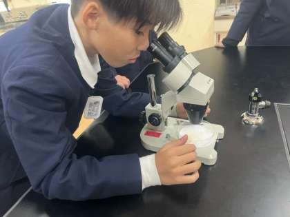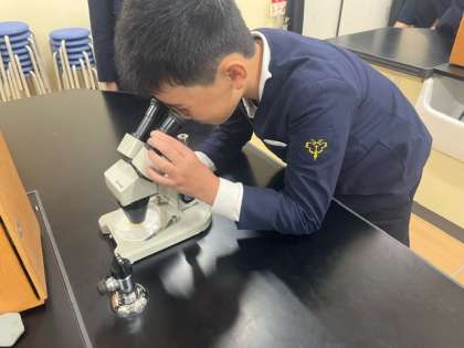5年生の時に扱った双眼実体顕微鏡を使いかたを復習し、各々じっくり観察しています。