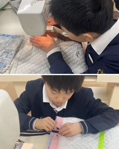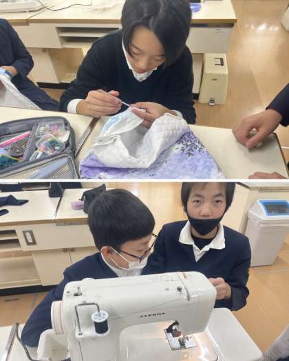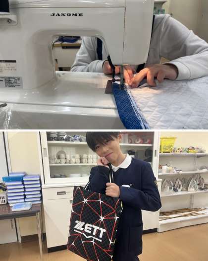 定規で計って印をつけたり、裁縫する前のまち針をさしたり、ミシンの準備をしたりと苦戦しながらも一つ一つ粘り強く頑張りました。