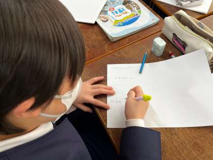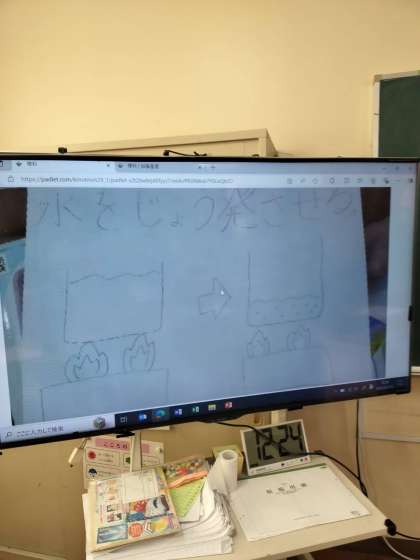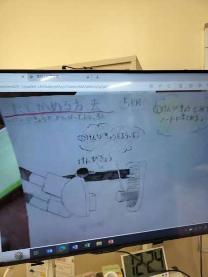 班で考えた方法をパソコンに取り込み、大画面を使って発表しました。