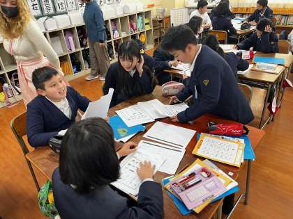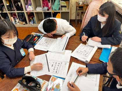 この表現を学習し、ペアやグループで値段をたずねる練習をしました。