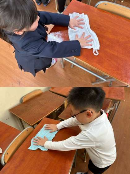 6年生が卒業遠足に行っている間に、日頃の感謝の気持ちを込めて6年生の教室を掃除しました!