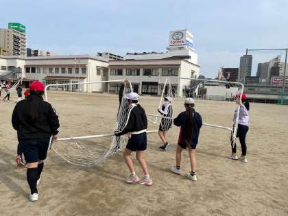 体操や、コートの準備、あいさつなど、全て子どもたちだけでおこなっています。