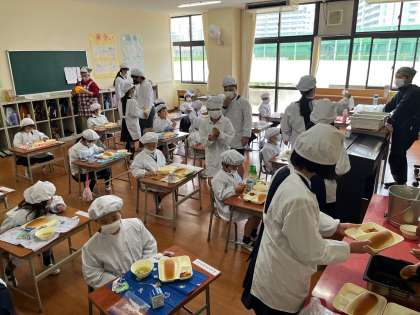 水曜日から給食が始まりました。6年生が給食を運んでくれました。給食前から「おなかがすいたー」ととても給食時間が楽しみな様子です。給食調理員さんが作ってくれたおいしい給食をいっぱい食べて、しっかり力をつけましょうね。