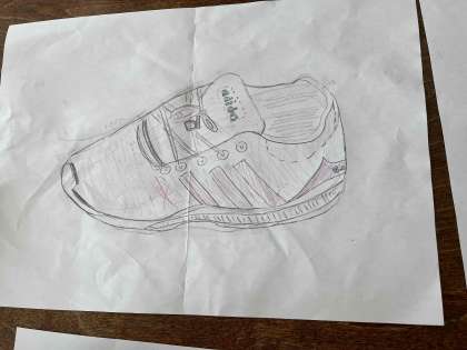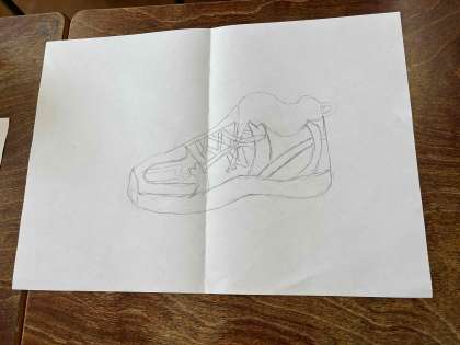 図工では、いつもお世話になっている自分の靴を描きます。まずは下書きから。学年が上がるにつれて本当に絵が上手くなっていることを感じます。