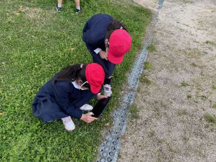 みんなでペットボトルの実験をしたり、運動場に出て春を探したりしました。