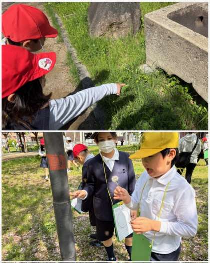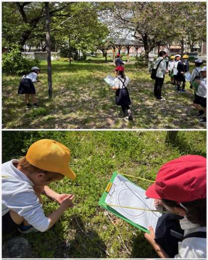 「生き物をさがそう」の単元で早速1組2組で公園や校庭でさまざまな生き物を観察してきました。