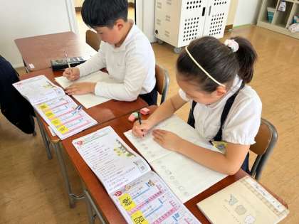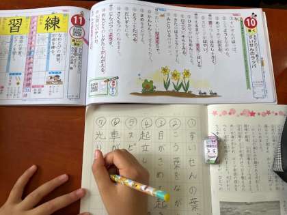 漢字ドリルのひらがなページを見て、漢字に書き換える。自分の力試し。