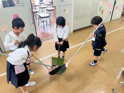 ほうきの持ち方やはき方はとっても難しいですが、みんながんばっている姿がステキです!