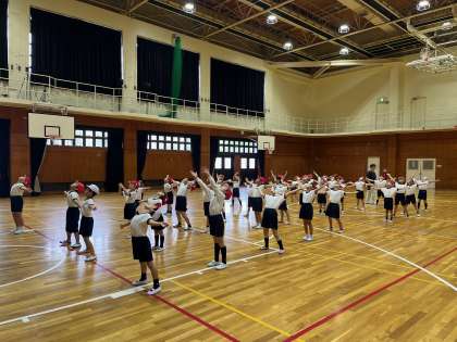 今日は、体力テストで計測がある反復横跳びの練習をしました。なかなか難しい動きで3本ある線をしっかりまたぐことができないのですが、1年生はリズムよくステップをふみ動いていてビックリ!本番が楽しみです!