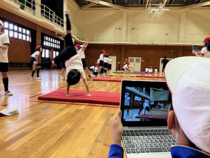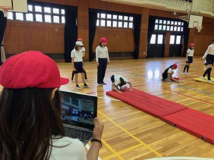 5年生のマット運動では、いろいろな技に取り組んでいます。それだけではありません!