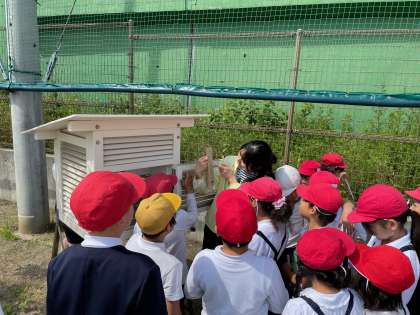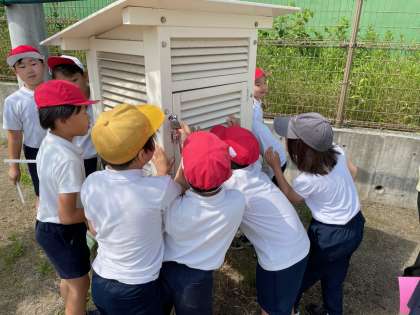 そして、運動場にある秘密の箱(百葉箱)についても勉強しました。特別に中身をオープン!